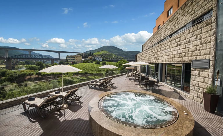 Entre vinhedos e o rio Douro, une charme, spa completo, piscina aquecida e culinária regional. É o refúgio ideal para romance e para viver o melhor do enoturismo português.