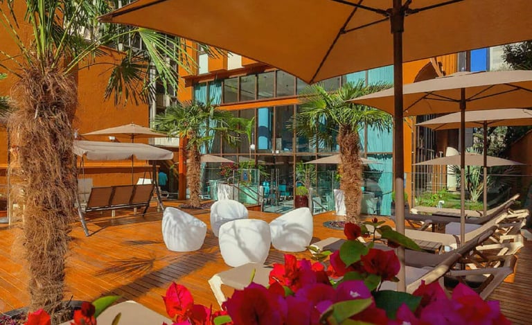 Com decoração inspirada no Samba, Bossa Nova e na cultura luso-brasileira, o hotel conta com restaurante Versátil, cozinha inspirada em pratos nacionais e internacionais, além de oferecer todas as noites de sábado o cardápio do Massa Fina. E ainda tem dois bares – um da piscina e o outro mais emblemático, com peças decorativas vintage é dedicado a Vinicius de Moraes, numa homenagem ao cantor brasileiro.